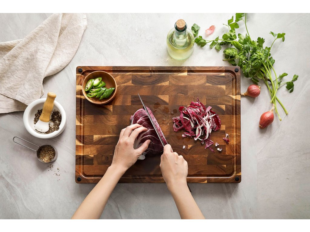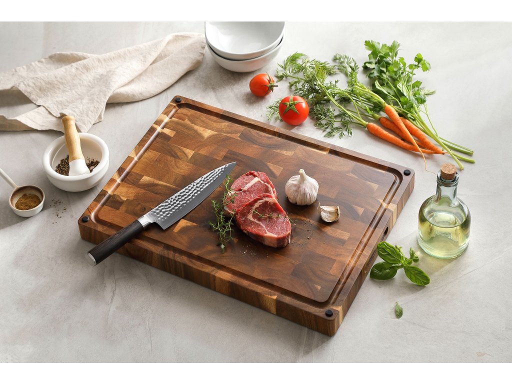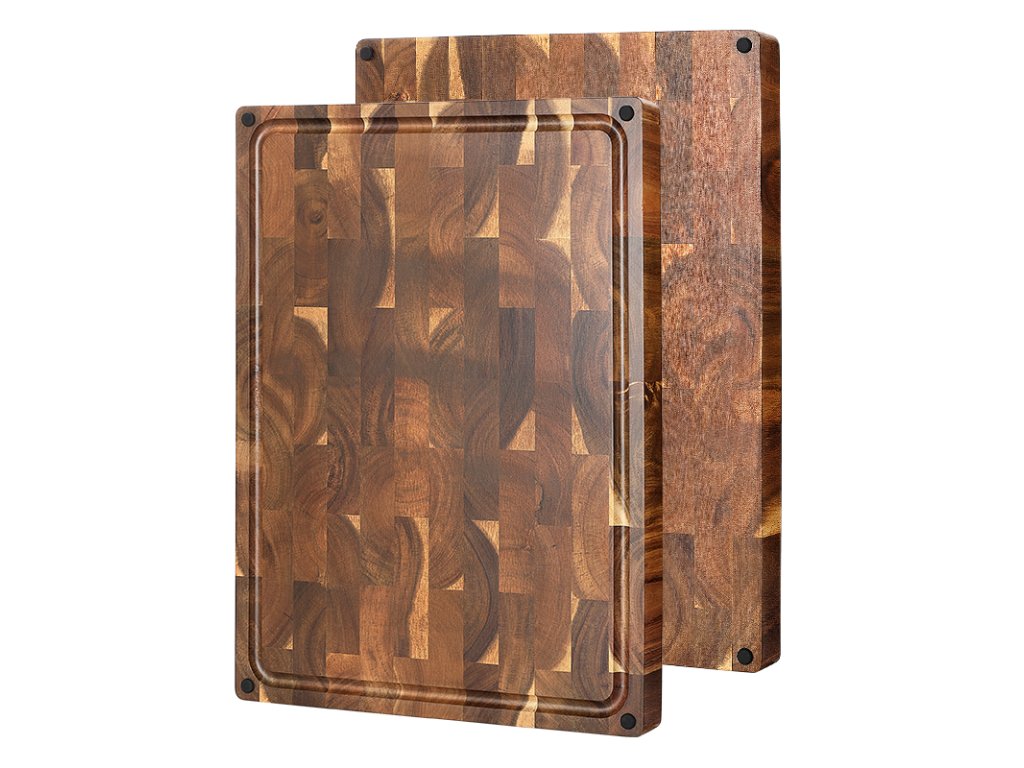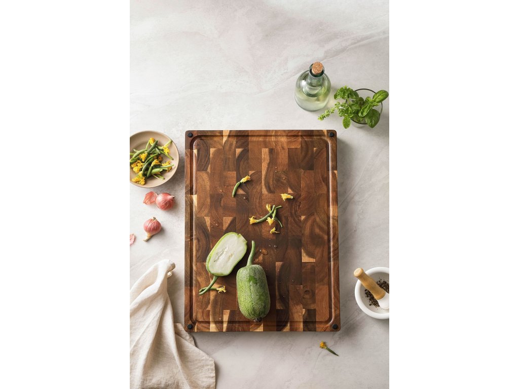 Schneidebrett aus Akazienholz mit eleganter Textur ist bis ins kleinste Detail durchdacht.