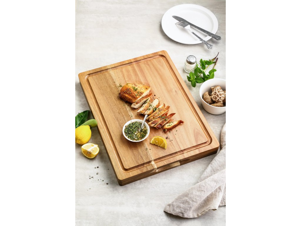 Hochwertiges Schneidebrett aus Akazienholz mit attraktivem Design.