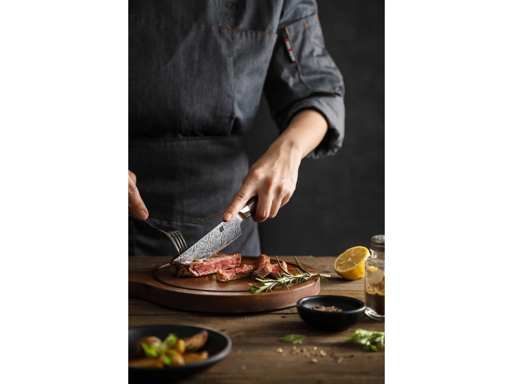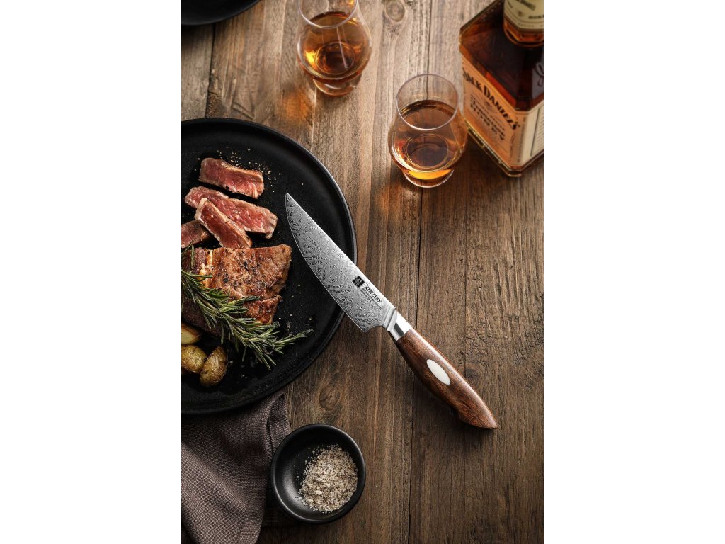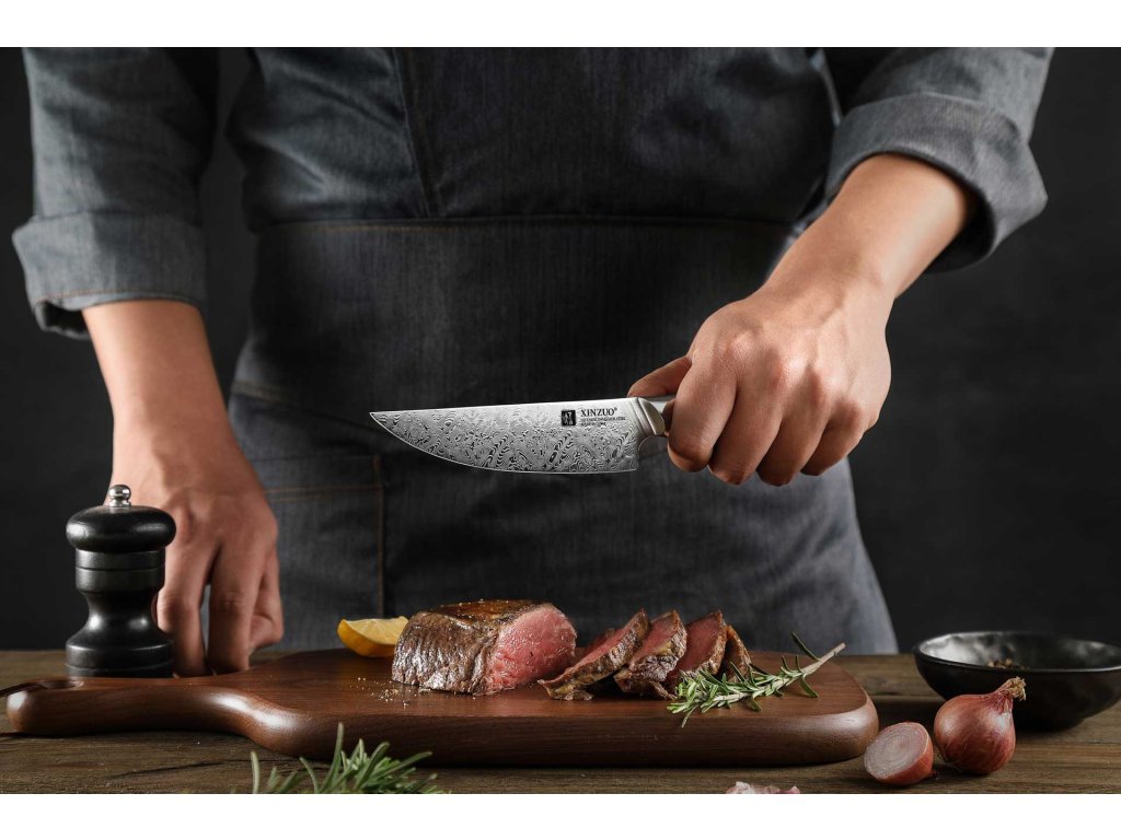 XinZuo Steakmesser - Der perfekte Schnitt für das perfekte Steak. Ein gutes Steak verdient nicht nur die richtige Zubereitung, sondern auch ein hochwertiges Messer, dass es ohne unnötige Risse und Saftverluste aufschneidet. Die Steakmesser von XinZuo sind so konzipiert, dass sie glatte und präzise Schnitte ermöglichen, ohne dass ein großer Kraftaufwand erforderlich ist. Dank der perfekt geschliffenen Klinge lassen sich selbst die saftigsten Steaks mühelos zerteilen, ohne dass sich deren Struktur beschädigt. Wenn Sie auf der Suche nach dem ultimativen Essenserlebnis sind, sollte ein Steakmesser auf keinen Fall in Ihrer Küche fehlen.