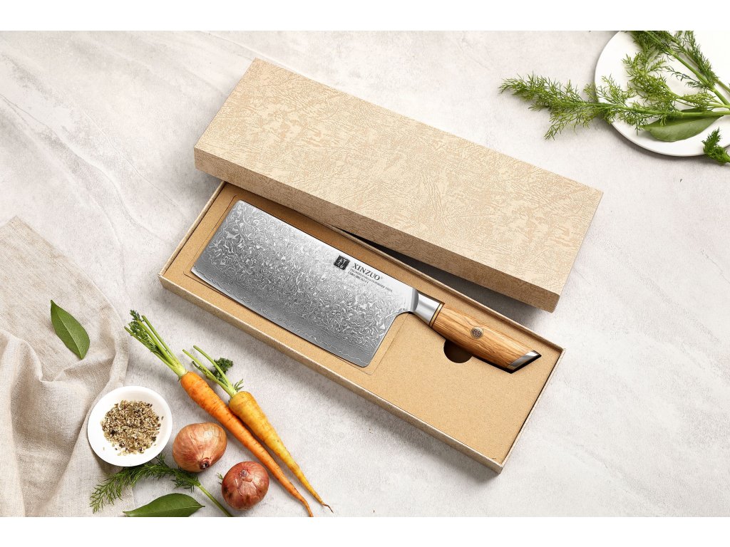 Die Messerserie XinZuo Lan B37 zeichnet sich durch die Betonung der Ergonomie aus, einschließlich der abgerundeten unteren Kante der Messerklinge für größere Sicherheit beim Schneiden. Dank des ergonomischen Griffs aus Olivenholz liegen die Messer nicht nur gut in der Hand, sondern sind auch ein Design-Stück mit natürlichem Look. Darüber hinaus sind die Küchenmesser dieser Serie in einer eleganten Box verpackt, bei der auf Umweltfreundlichkeit und recycelte Materialien Wert gelegt wird.
