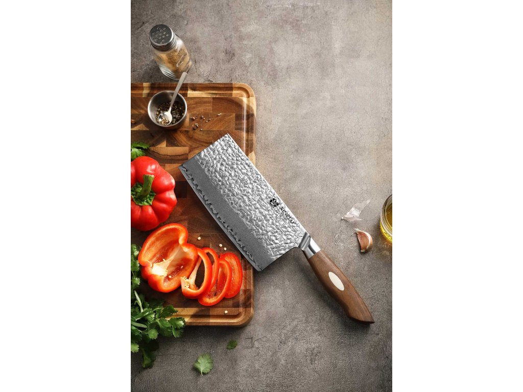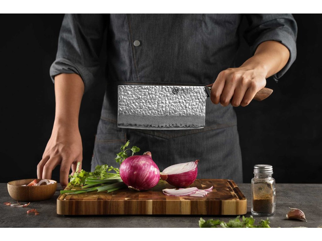 TAO Messer - Kraft und Präzision in einem. Dank ihrer Vielseitigkeit erfreuen sich die chinesischen TAO Messer in ganz Asien großer Beliebtheit und finden zunehmend auch in europäischen Küchen ihren Platz. Ihre massive Klinge mit einer großen Breite ähnelt einem Teil eines Schwertes, was ihnen ein einzigartiges Design und außergewöhnliche Eigenschaften verleiht. Das TAO Messer schafft fast alles - vom Schneiden von Obst und Gemüse bis zu großen Fleischstücken. Dank seines Gewichts nutzt es effizient die Schwerkraft, so dass das Schneiden mühelos gelingt. Wenn Sie ein Messer suchen, das Kraft, Präzision und traditionelle asiatische Handwerkskunst vereint, dann ist TAO die richtige Wahl.