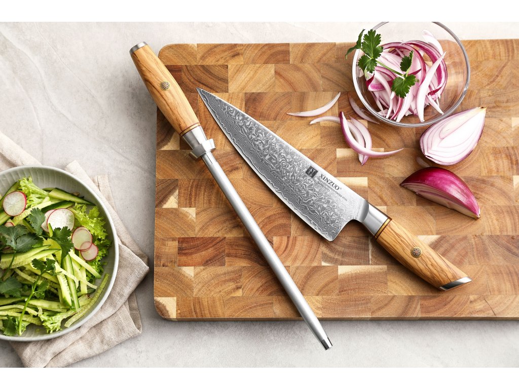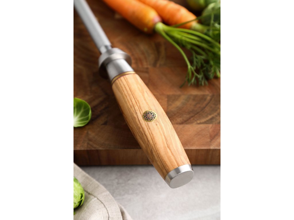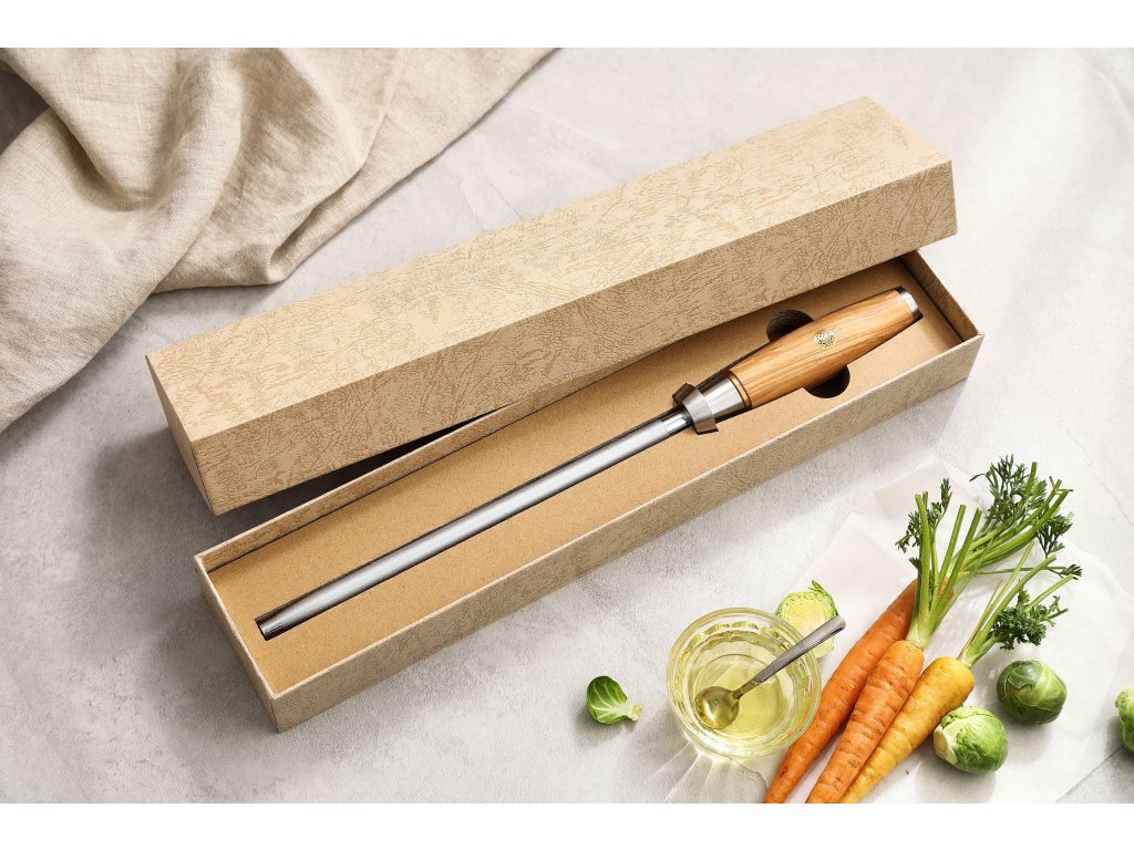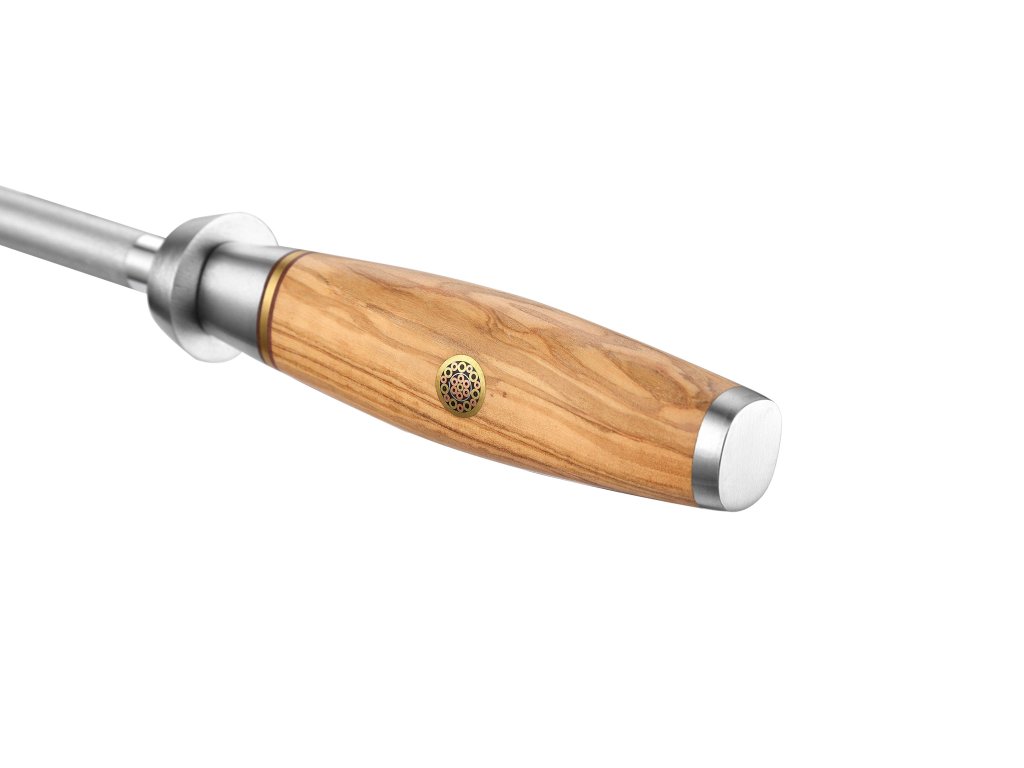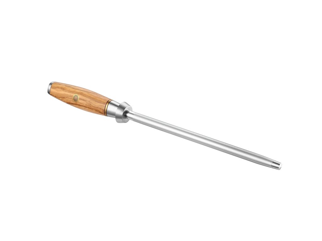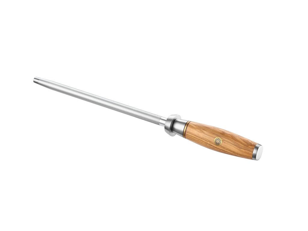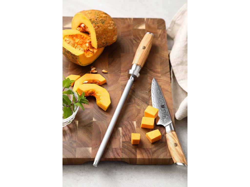 Hochwertiger diamantbeschichteter XinZuo-Wetzstahl aus der Lan B37-Serie mit Olivenholzgriff.