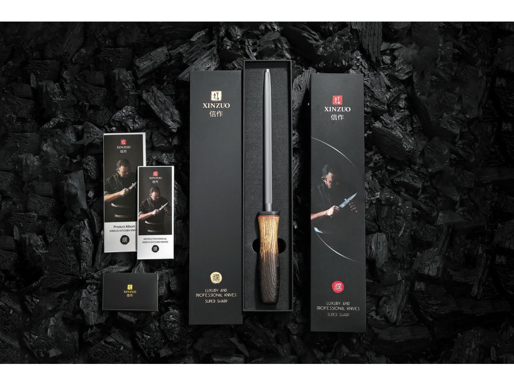 Der XinZuo-Wetzstahl Mo X06 mit Kohlenbeschichtung ist in einer eleganten Geschenkbox verpackt. Mit dieser Geschenkbox eignet er sich als ideales Geschenk für viele Anlässe und nahezu jede Person.