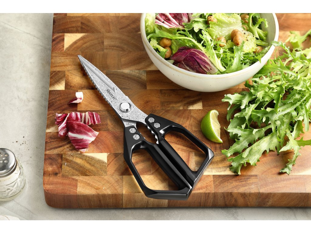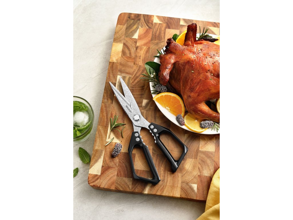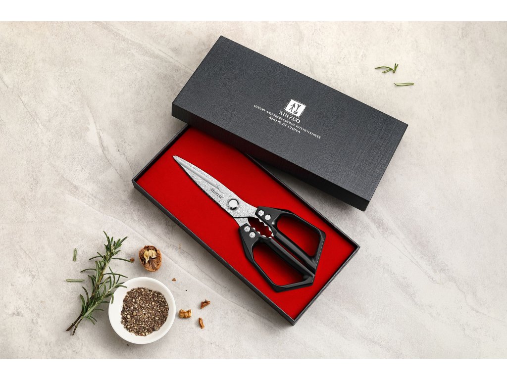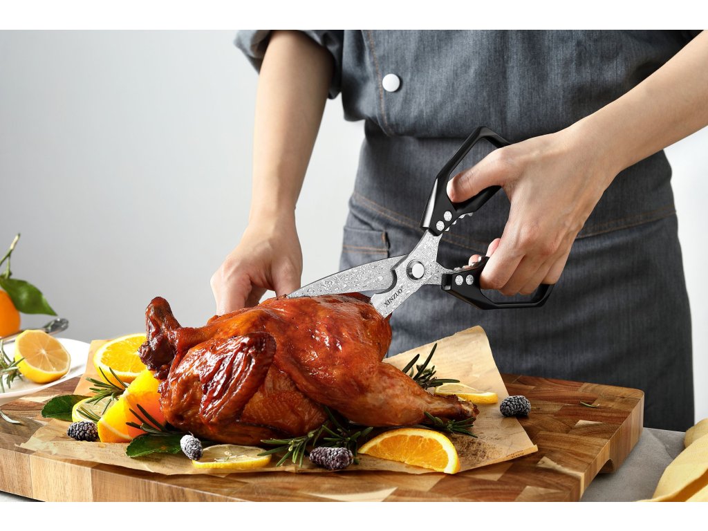 Die praktische mehrzweck Geflügelschere von XinZuo, die nicht nur zum Geflügel-Tranchieren, sondern auch zum Kräuter schneiden und für die Fischzubereitung verwendet werden kann.
