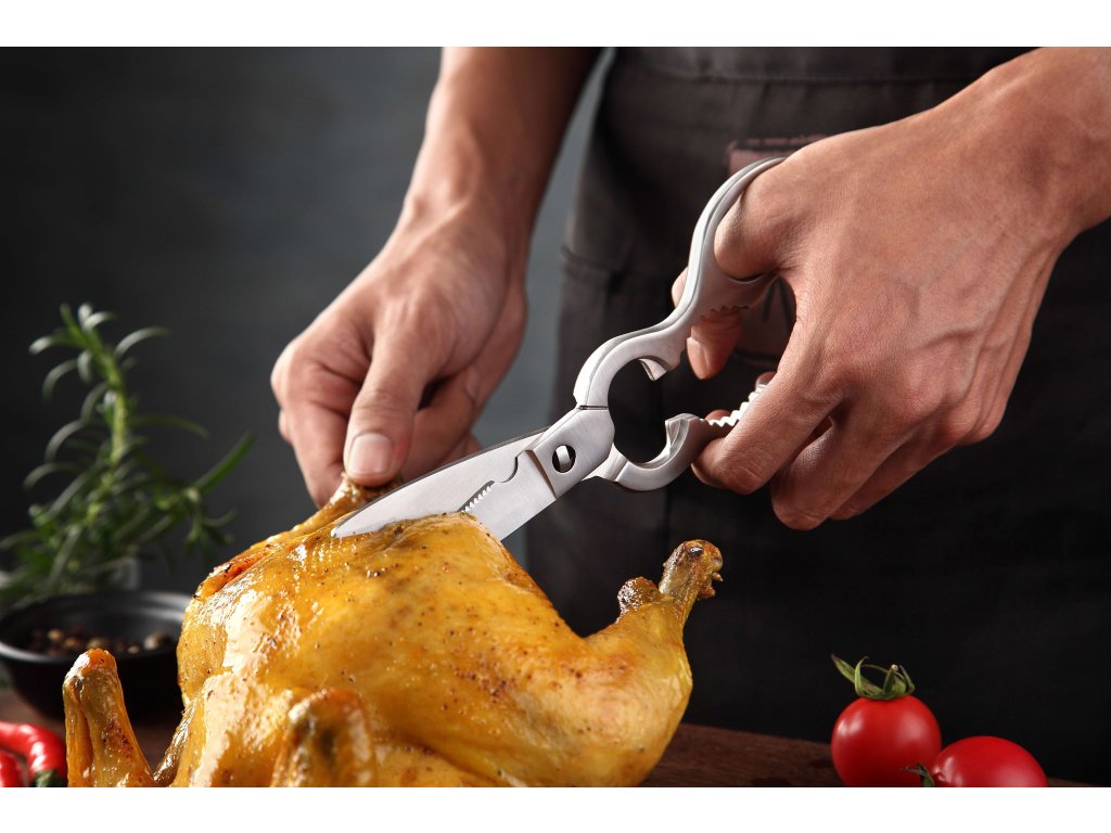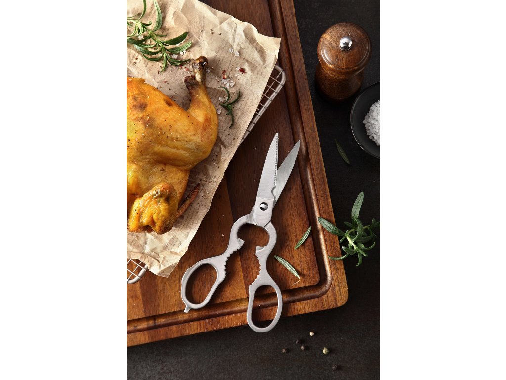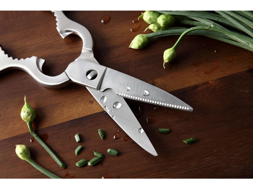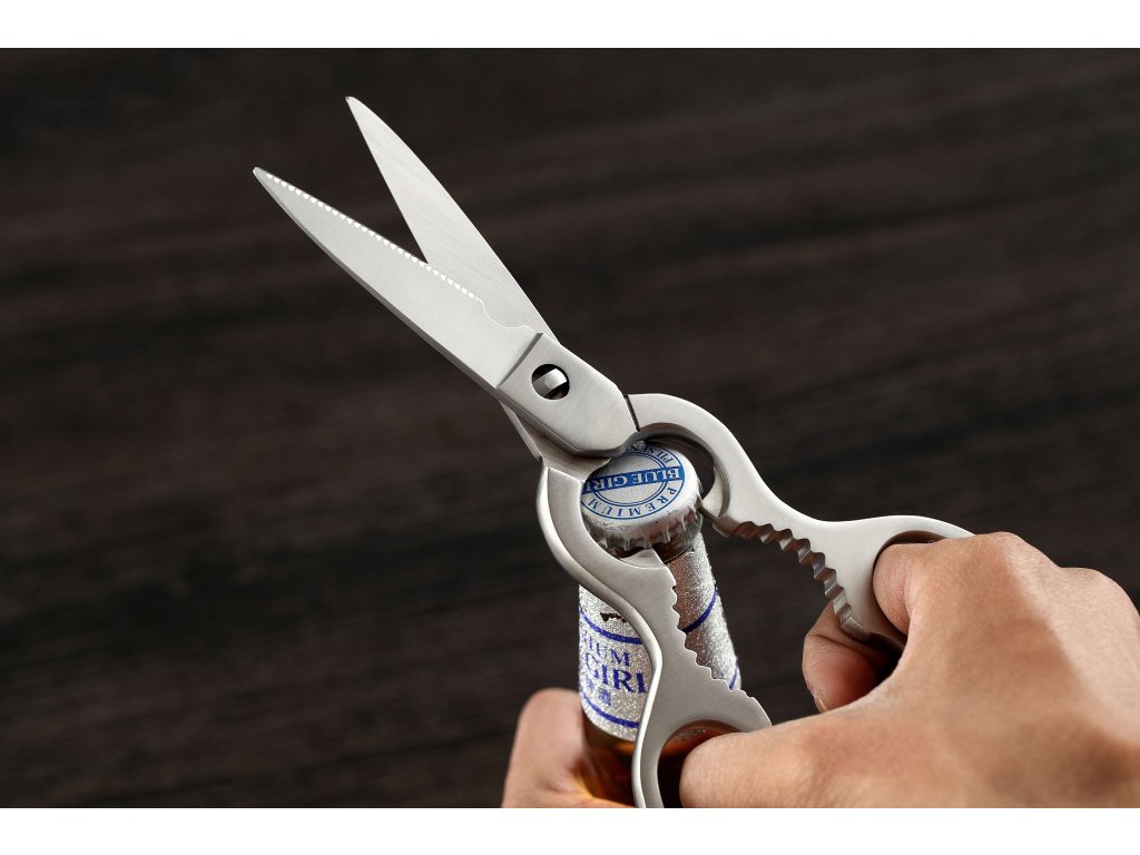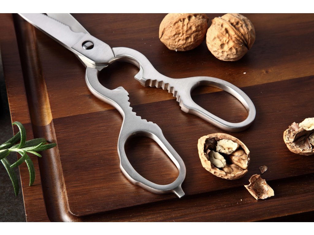 Schere aus rostfreiem Stahl mit Öffner und Nussknacker.