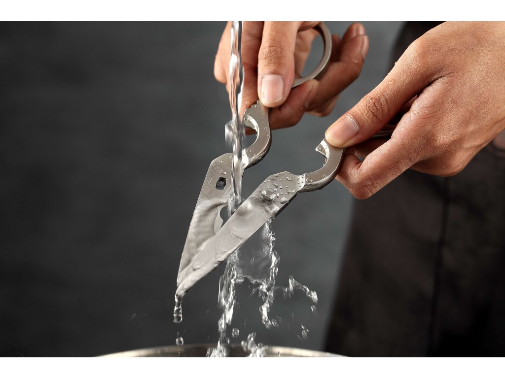 Die XinZuo-Schere kann auch als Getränkeöffner, Dosenöffner, Nussknacker oder Kartoffelschäler verwendet werden. Sie können die Schere zerteilen und leicht abwaschen.